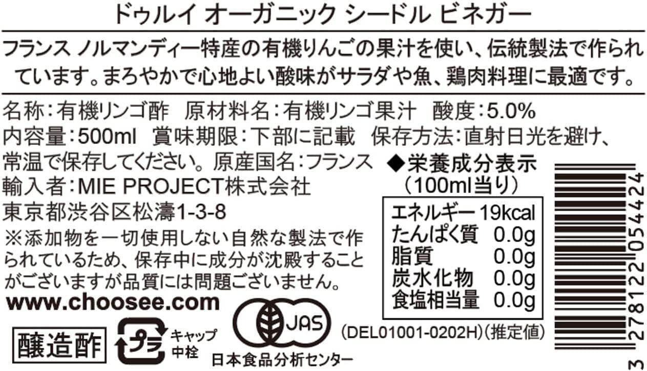 【有機JAS認証】 ドゥルイ オーガニック シードル ビネガー 500ml ノルマンディー産有機リンゴ果汁使用