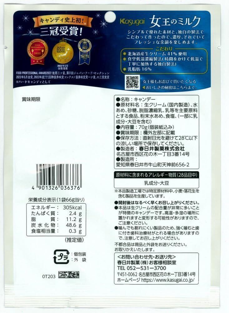 こちらの70gパックが6袋セットになっており、ちょっとしたおやつとしても、ストック用としても便利です。「春日井製菓 女王のミルク」で、毎日をちょっと特別な時間に変えてみませんか?品質にこだわった素材を使用し、皆様に愛される商品をお届けします!