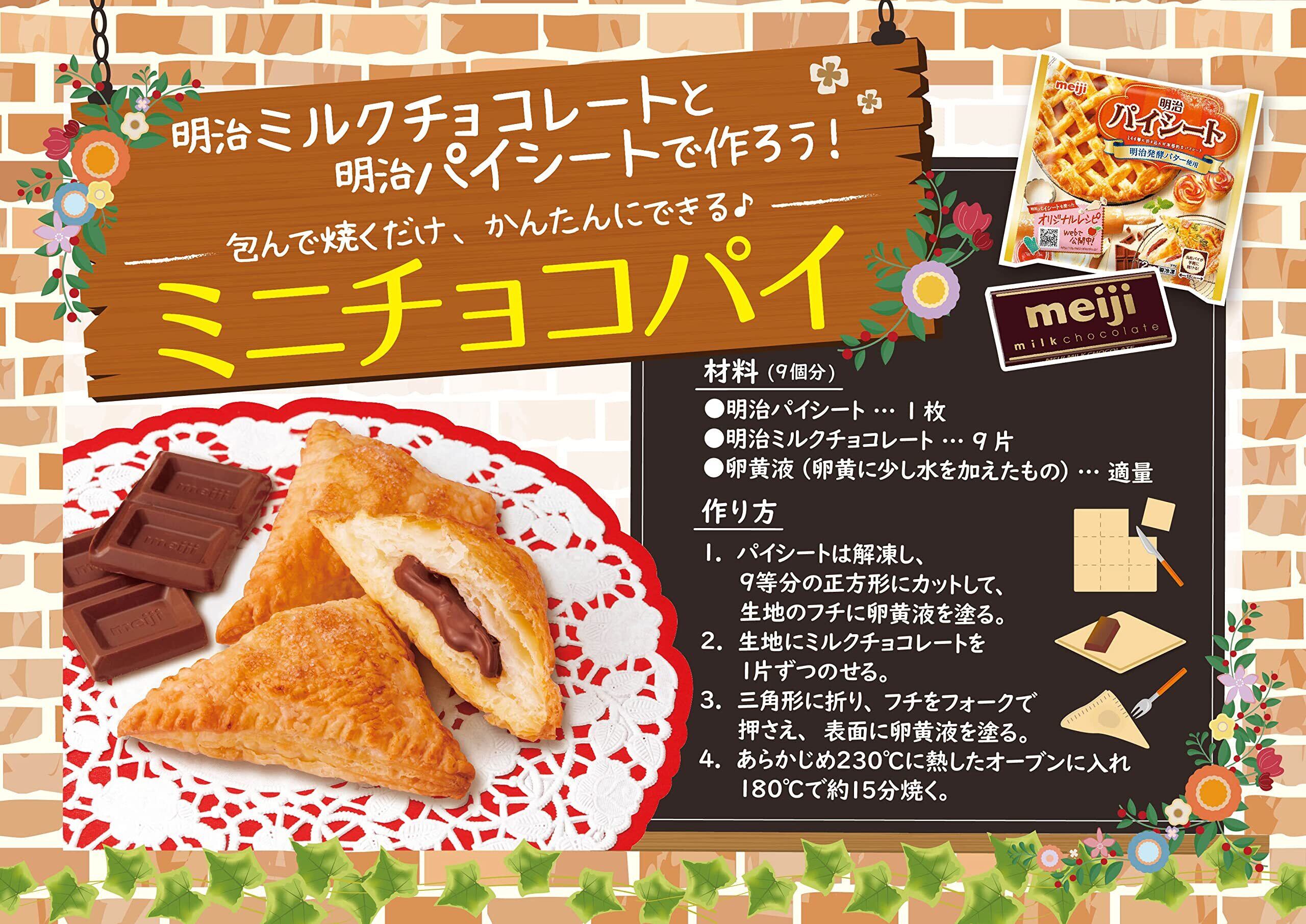 明治パイシートは、風味豊かな明治発酵バターを使った、144層に折り込んだ本格的なパイシートで安定してサクッとふっくら焼きあがります。ホールのアップルパイが作れる18cm×18cmの正方形。独自の配合による安定した焼きあがり。パイシートを活用としたオリジナルレシピも充実しています。