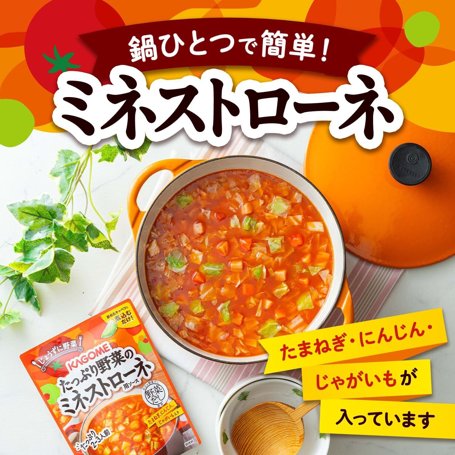 「カゴメ たっぷり野菜のミネストローネ用ソース」は、豊かな野菜の風味を楽しめるミネストローネを簡単に作れる便利なソースです!多種類の野菜をふんだんに使用しており、栄養バランスもばっちりです。